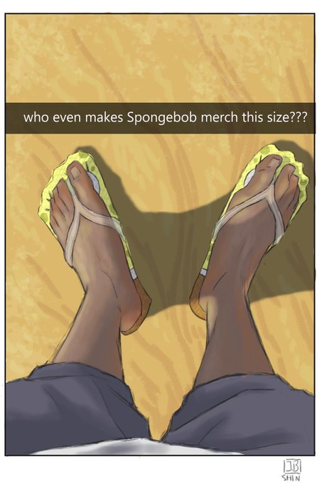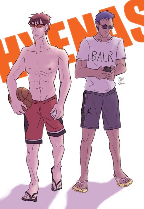 More fanart for Hyenas by nakedhelot, featuring size 12 Spongebob flip flops and Kagami being a shirtless menace. #fanart #knb #hyenas #aokaga #aominedaiki #kagamitaiga