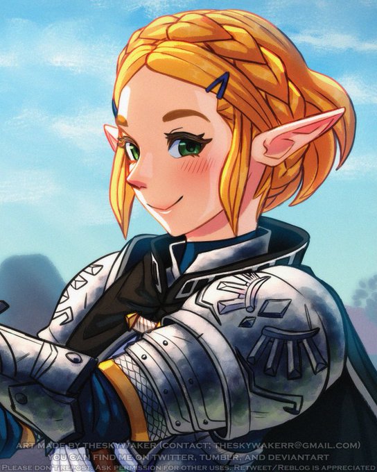 zelda says, "heehee! so, how do i look as a knight? i feel braver already!"