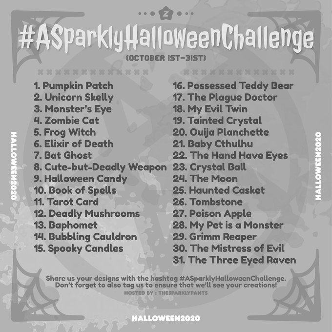 #ASparklyHalloweenChallenge Here is our DrawTober Halloween art prompt for 2020! Enjoy ☺️✨ ig : thesparklypants