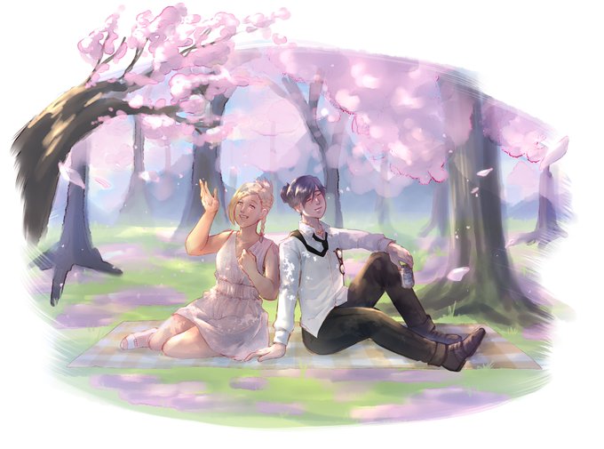 A cherry blossom themed comm for @/Chyron_HR with Minfila and their WoL! ☺️🌸☀️💕