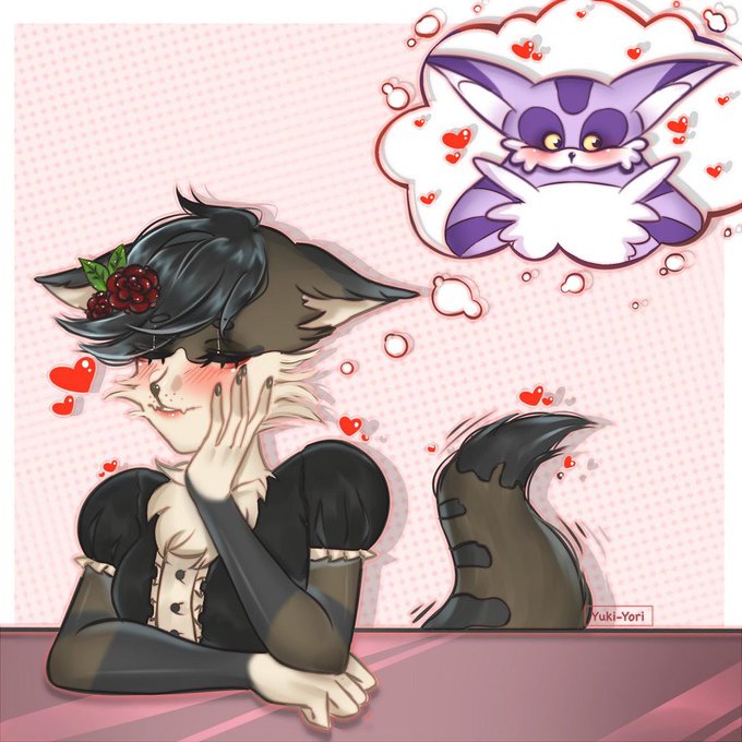 A cute YCH of Schnitzel thinking about her dream man by the wonderful Yuki-Yori! ☺️💖