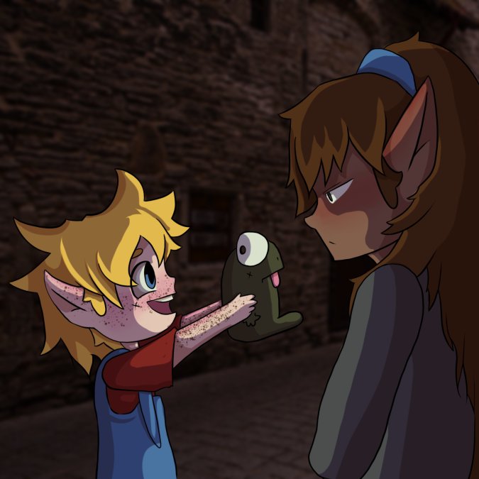 Another moment from Dnd. Valna (right) snuck away but didn't notice Tucker (left) until Tucker found a derpy frog statue and squealed in excitement. Valna was not happy with Tucker but can you really be mad at him? The answer is no.