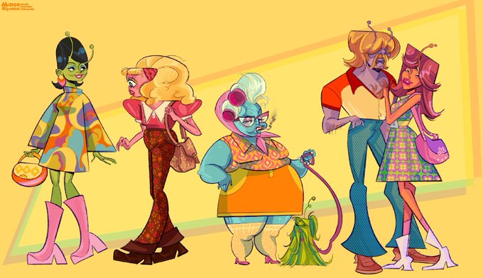 A couple of 60s-70s-esque fashion alien peeps 🛸🐄🍭