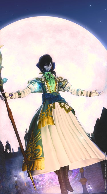 オキニのヒーラーミラプリなんだけど、大昔にフレが描いてくれたものだから今でもリメイクして崩せないでいる。胴がLv56のハロードラミー・ヒーラーダブレットで、レベリング道中の装備にしては見た目がめちゃくちゃいいのよね。