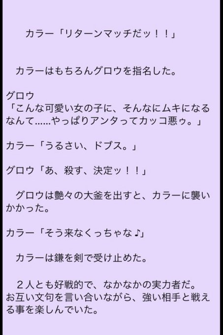 そこで彼女の強さ(運)に魅せられたカラーは、休戦中ずっとグロウと戦いたくてうずうずしていた。