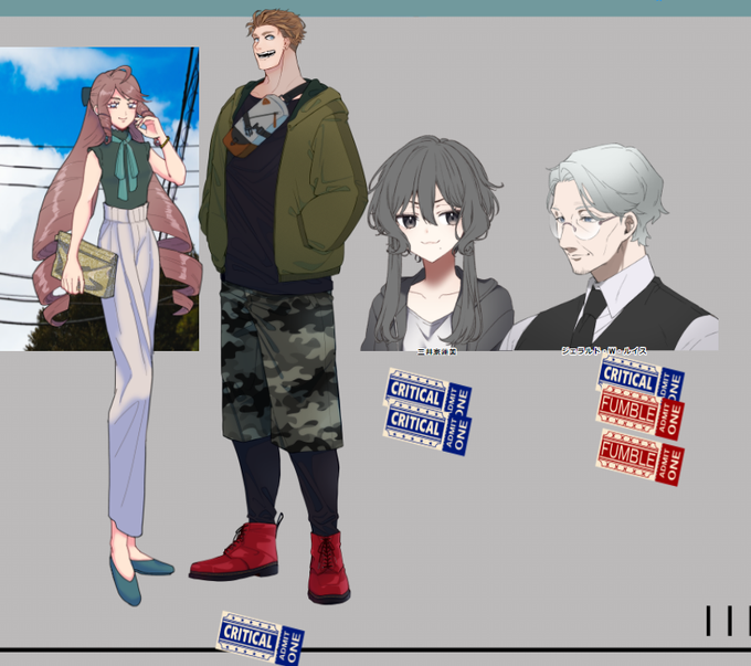 🧵二日目 不穏が更に不穏してきたな……好きなお味!続きが楽しみだ~! そして立ち絵揃いました!探偵事務所の面々と暇つぶしに来てる刑事(?)です