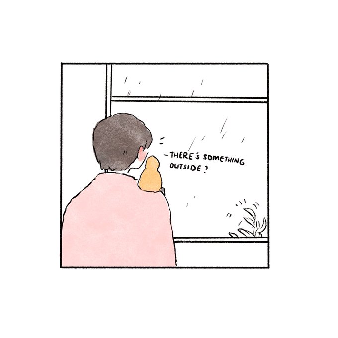 Hobi hops on Jin’s shoulder as he heads to the window to check on the storm. The plant outside their window is tilting at a bizarre angle & Jin realises that there’s something clutching the plant for dear life.