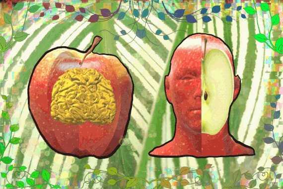 The fruit of good and evil: after eating the apple his knowledge started to grow...