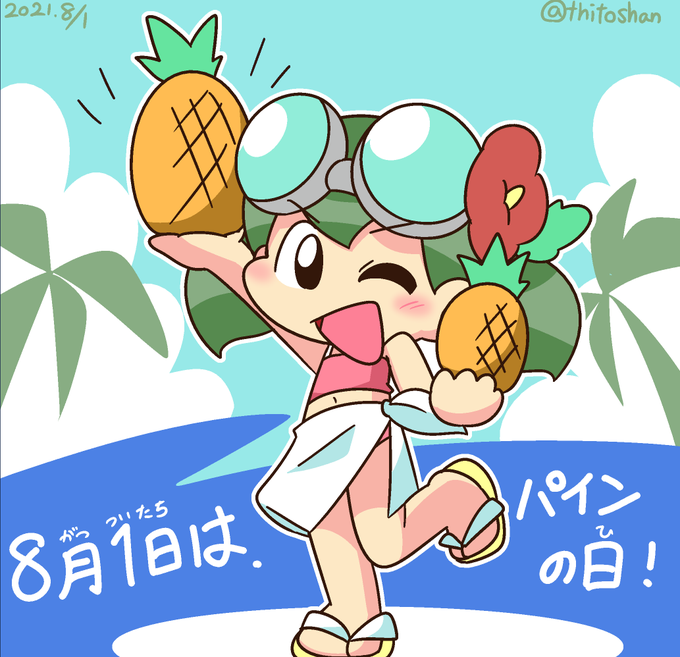 #1日1琴やよい! 8月1日は、#パインの日。🍍 夏本番、南国トロピカル! #琴やよい #にょきにょき