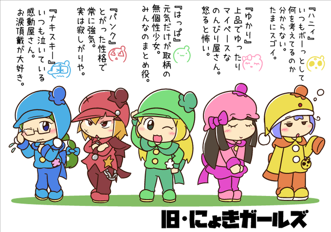 にょきまんが。の新連載まんが、 『にょき娘』のキャライメージイラスト! アナタの推し”にょき”はどの色の娘かな? #にょきにょき #エイプリルフール