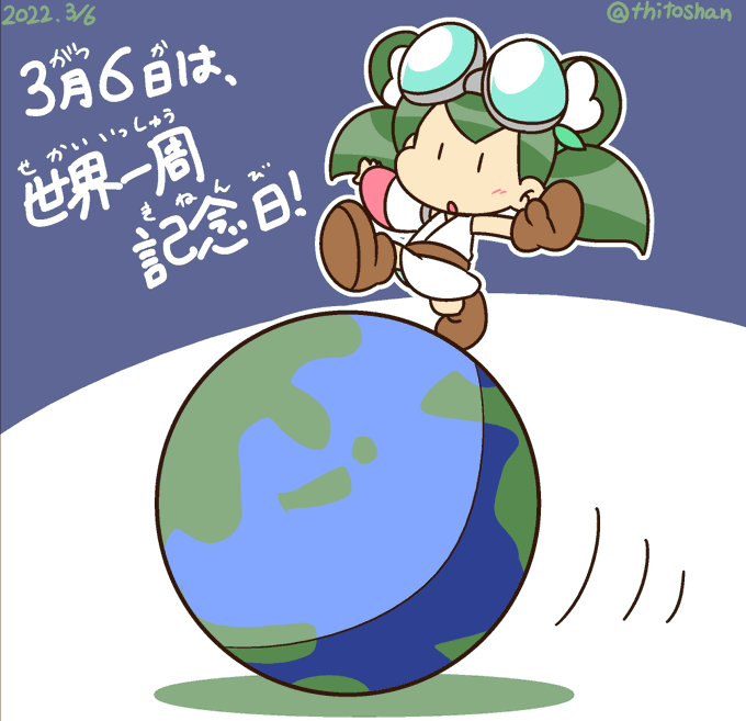 #1日1琴やよい! 3月6日は、#世界一周記念日。🌏 地球の玉乗りで、ぐるりと一回り。 #琴やよい #にょきにょき