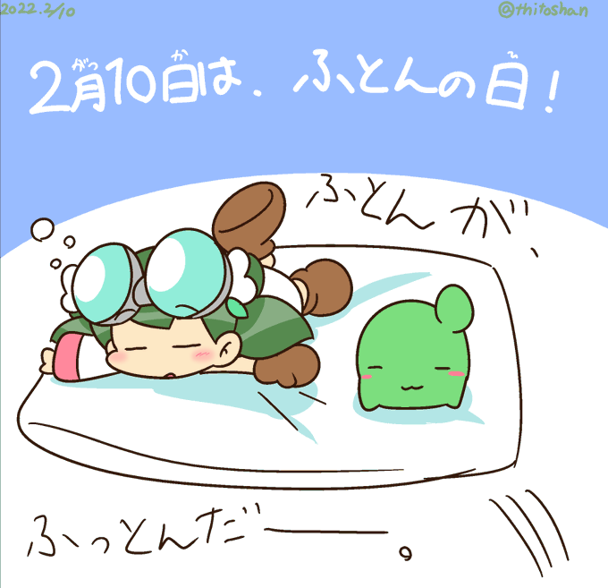 #1日1琴やよい! 2月10日は、#ふとんの日! ふかふかふとんの上でごろごろー。 #琴やよい #にょきにょき
