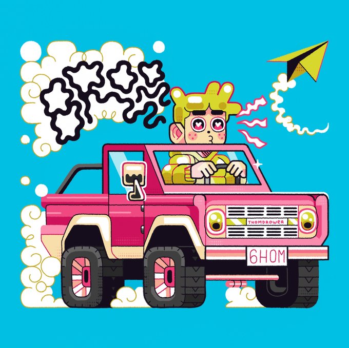 Hola! Este es un dibujo de mi personaje "Ghom" manejando hecho en @MediBangPaint. Estoy intentando jugar con colores nuevos😊
