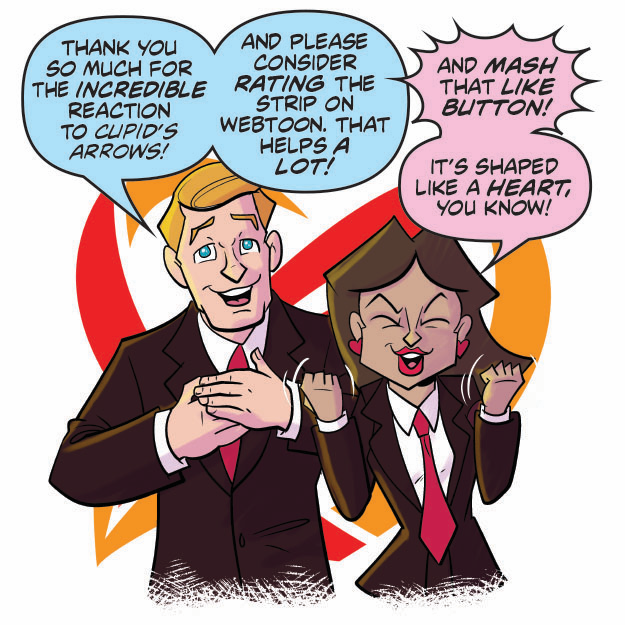 Cupid’s Arrows is doing great! But we could still use your help. Ratings and Likes mean the world to us. #cupidsarrows #Webtoons #webcomics