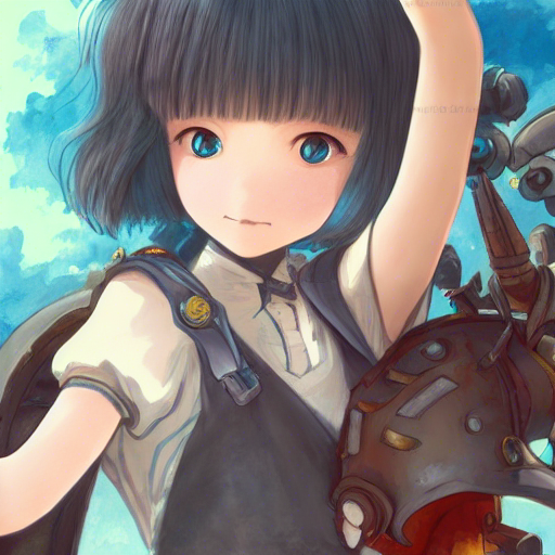 @from_9th "a detailed illustration of Short Bang Cute Girl portrait, studio Ghibli, cygames, trigger Inc, Taito Kubo, Kouta Hirano, Yoshitaka Amano"