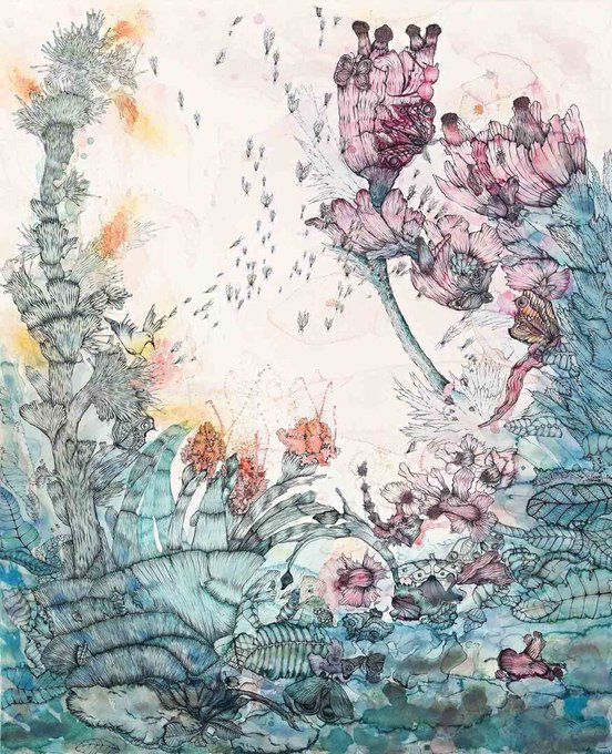 this work was directly influenced by monika tichacek's "to all my relations." series - which features grand and vibrant watercolour, gouache and pencil compositions depicting flora and fauna as a celebration of nature!