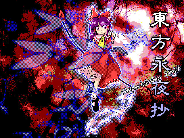 an old pc-98 style mockup i did of imperishable night's title screen for a project i ended up leaving for various reasons, figured i'd post it instead of letting it collect dust #東方 #東方project
