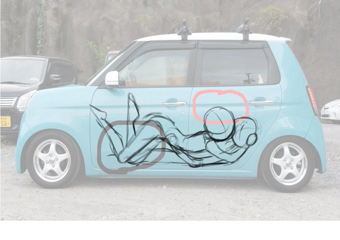 ちなみに痛車のイラスト何をどんなふうに書くか決める際に提出したのがこれw 車のスペースからしっかり考えています。 夜な夜な相談しつつ ラフの修正を繰り返したのが 本当大変だったな。泣きながら描いてたもんな 車完成させてくださってありがとうございました