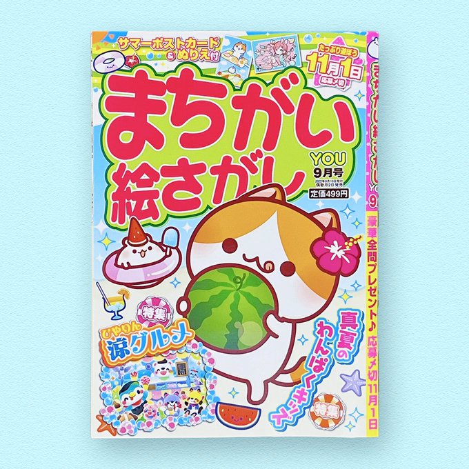 【おしごと】「まちがい絵さがしYOU2022年9月号(英和出版社)」で1問担当させて頂きました。どうぞよろしくお願いいたします。こう暑いと水浴びしたくなりますね。