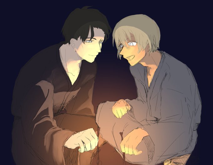 #リプ来たキャラを赤面させる のぶさん(@ikamoikagakana) エマちゃん(@asauasa )より 沖矢昴さんと赤井秀一 絵柄が安定しないのは・・・ご了承下さい・・・😇😇😇
