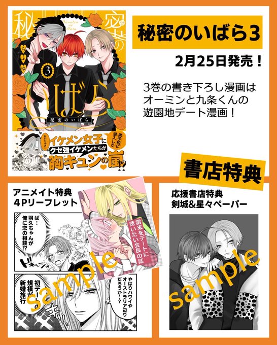 秘密のいばら3巻、発売日は来週ですが販売開始してる書店も増えてきたのでぜひよろしくお願いいたします😊3巻の内容は林間学校!体育館倉庫閉じこめ!海デート!遊園地デート!です😼🧡
