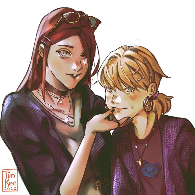 Here is such a very cute art with Tina and Miyon in quite bright outfits I drew. I really enjoyed making these sequins on jewelry and makeup 🍬