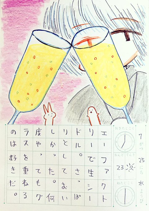 7/25,26,28,30 溜まった分の日記を買ったばかりの ガラスペンで描いた。 #みつき君 (s)