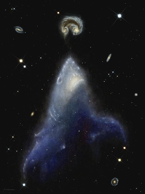 Space jaws hunting a space seal. Based on NGC 1427A and the Antennae Galaxies. 🦭🦈