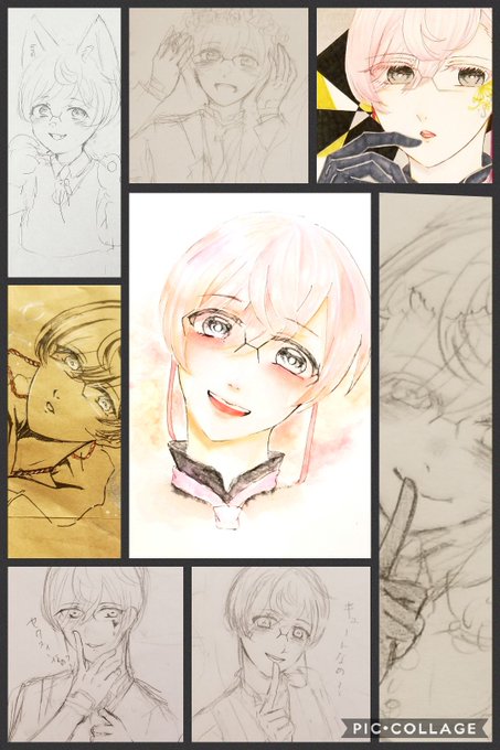 さっき100均の水彩絵具と100均の筆、パレット、紙で描きました。堀川くんです。堀川くん描きやすくていっぱい書いちゃう…