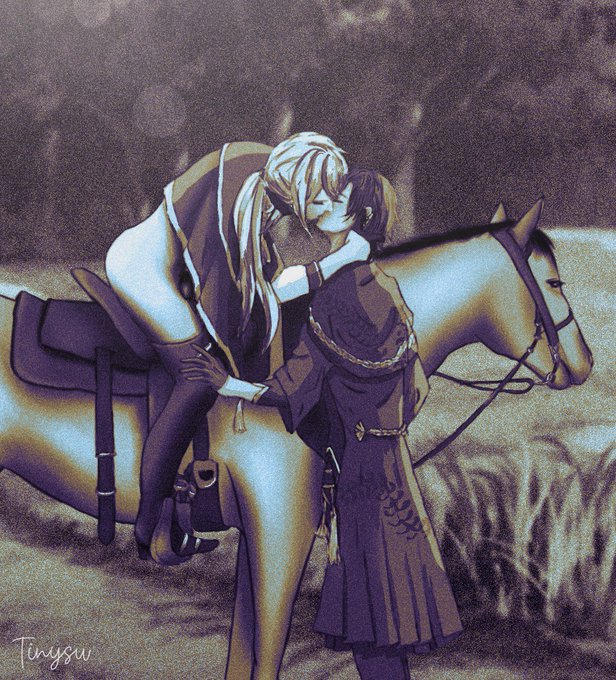 #八艾 我最喜歡的眷屬CP 看著兩個小可愛 內心都充滿了溫柔啊 (請忽略那畫得極為粗糙的馬 我不會畫⋯) #新世界狂歡 #nucarnival #nuカーニバル #yakumo #edmond #yakumond #NUcarnivalfanart