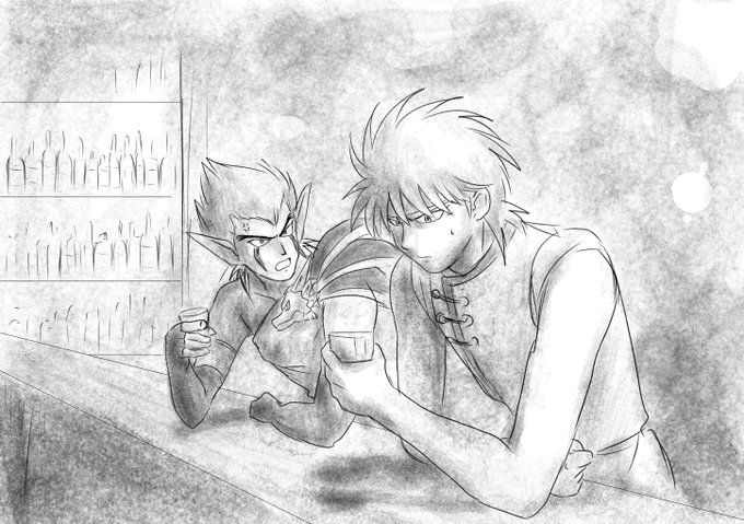ダイの大冒険のサウンドトラックのディスク2の二番目に入ってる「竜の騎士」の、チェロとバイオリンがそれぞれバランとダイをイメージしたものって林ゆうきさんが言ってたのを聞いて曲を聞いてたら、無性に描きたくなって描いた一枚。