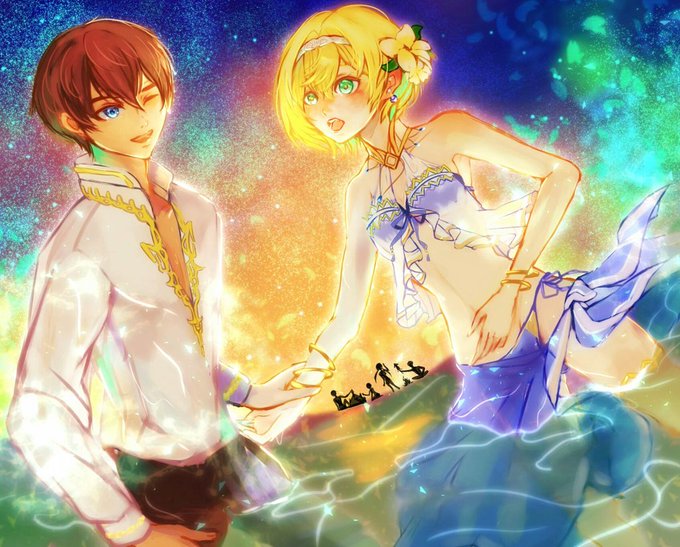 水着イベントのマリエルと主人公で応募させて頂きます🙏✨きっとマリエルにとって時間が止まって欲しいほど素敵な夏になったのではと想像しました!あとの3枚は過去絵でお気に入りのものです!