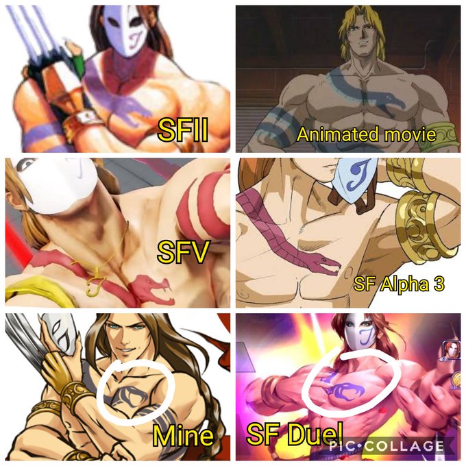 I've been looking at the Vega art for that SF: DUEL and noticed something: his tattoo looks similar to how I draw it in all of mine 🤔 When I started drawing him, I specifically designed that tat to give it a more graphic design look.. seems to have come full circle 😂