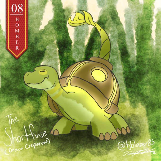 "A common house pet among children. Many enjoy igniting the wick-like plant on its back; causing the Shortfuse to 'sneeze', sending smelly glowing dust through the air. It greatly enjoys this prank."