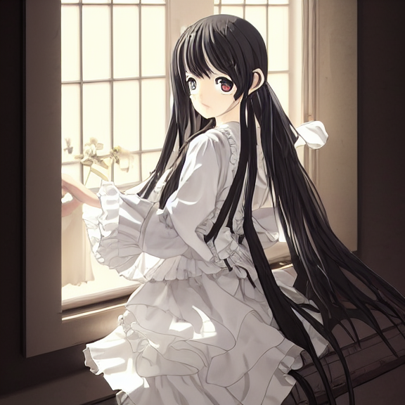 メイドではなく、黒ドレス&白エプロン指定のprompt。