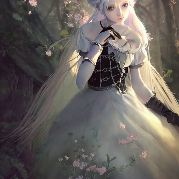 先日試した、ちょっとリアルな銀髪のファンタジーお姉さん出力Prompt、もう少し出力してみた。