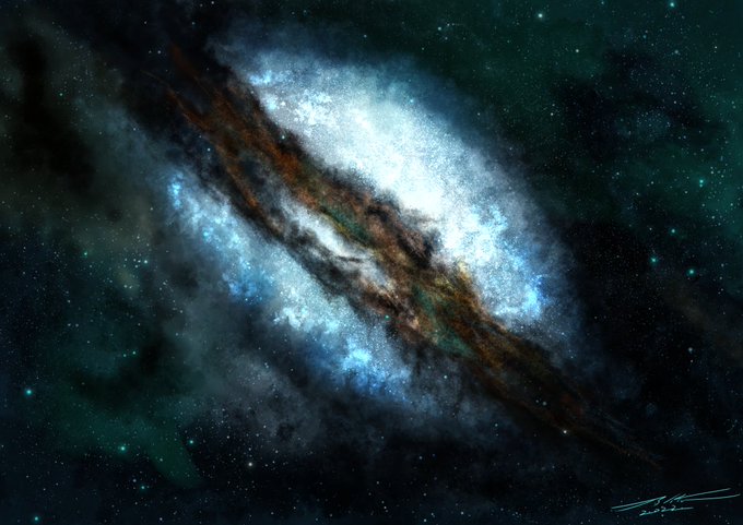 #イラスト #創作 #風景イラスト #月暈 #illustration #landscapeillustration #clipstudiopaint  #milkyway  #moonhalo #過去絵と現在絵を比較してみようキャンペーン