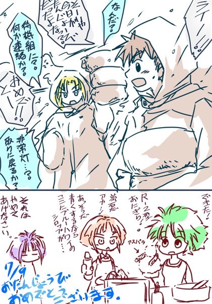 #スパロボ版深夜のお絵描き60分一本勝負 【版権】元気爆発ガンバルガー【OG】マイ・コバヤシ 中の人の折笠さん繋がりで虎太郎とマイマイで衣装交換 「元気爆発SRX!!」