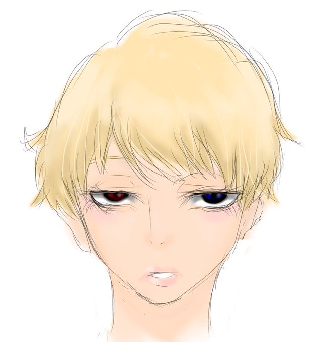 #創作クラスタさんに金髪オッドアイで14歳の美少年というお題でキャラデザして欲しい 顔だけだし過去絵で申し訳ない