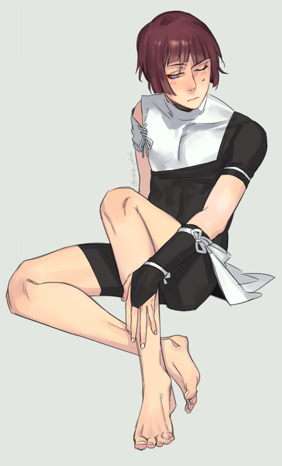 #裸の石切丸にフォロワーさんから言われたもの付け足していく すごい夏らしい装備でした。きっとこの後厄落とし(物理)されるかな…ッ リプライありがとうございました!
