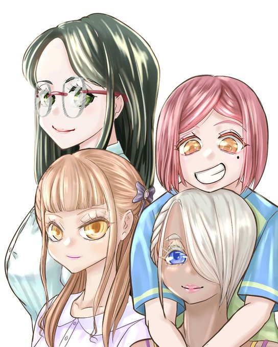 最近大人数のイラスト描いてなかったので、4人で苦戦してる(´-ω-`)