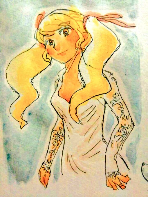 久し振りに色鉛筆で塗ってみました。 衣装はかめころ⭐なぎさん(@koro_nagi )のアメルちゃんが着ていたワンピースをお借りしました~(//∀//)