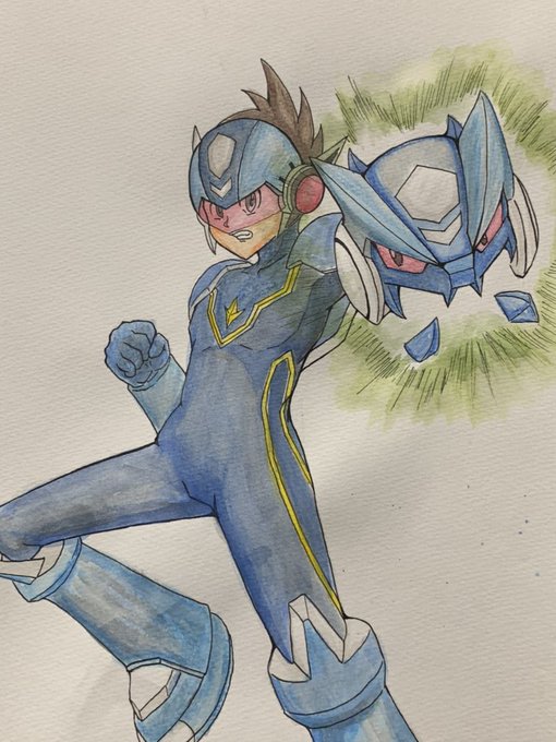 #ロックマン ダイブマン もう少しおっとりした感じので描きたかったけど、何せお嬢様が危ないので仕方ない そしてやはりデカイ…