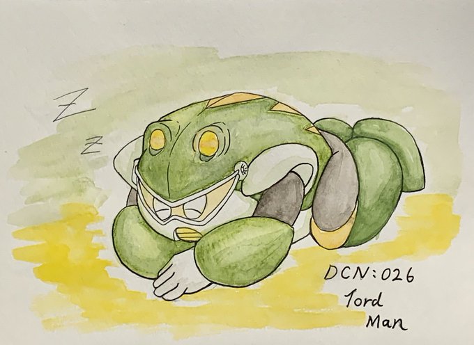 #ロックマン トードマン これ描いたのが2月くらいで、冬眠中かなぁと思ってたんだけど今じゃ全盛期になってしまった