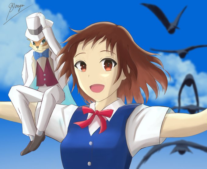 カラーラフ → 仕上がり なんか髪の毛上手く染めれなかった🥱 カラスは全然上手く描けなかったから、シルエットだけ描いてボカして誤魔化したww #猫の恩返し #ジブリ