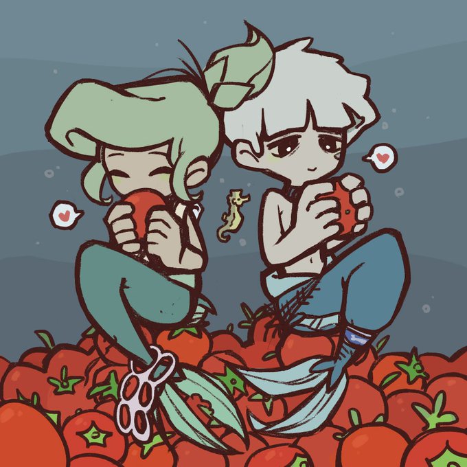 I made some attempts...🥰I like Tidy and her friend very much and I hope the boy can eat a lot of tomatoes, too🍅