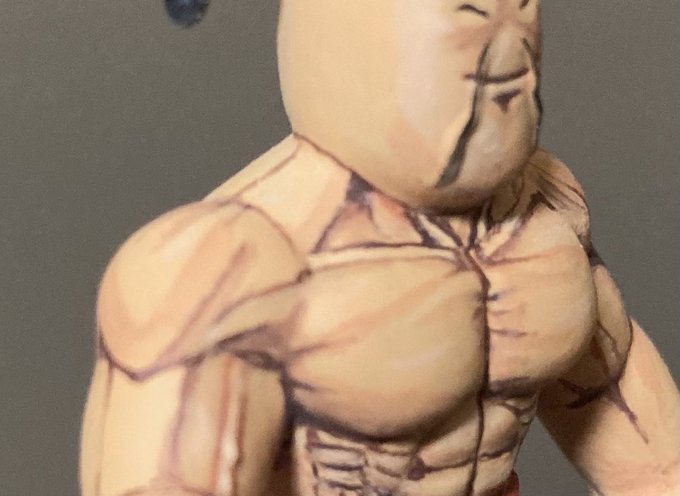 アシュラマンがまだ完成しないので、キンケシ 塗装伝わり難いがこだわった自己満足の箇所。ラーメンマンの鎖骨からの肩の筋肉。功夫使いなので筋肉は同じ感じで付くと思いブルース リーの筋肉を参考にしています。でも私が一番スポーツ選手で見る筋肉はふくらはぎです。