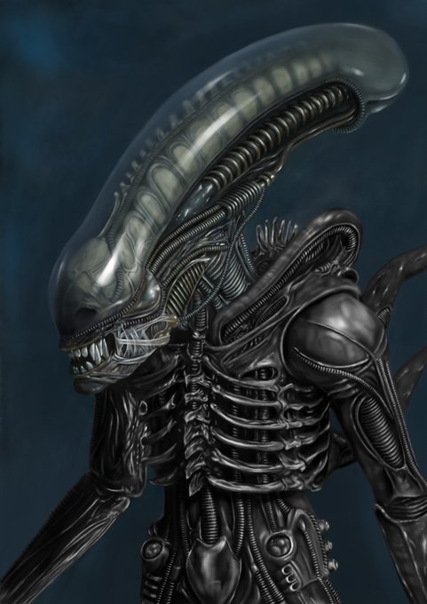 #ギーガー だったらってコレかなって事で、#エイリアン を描きました。