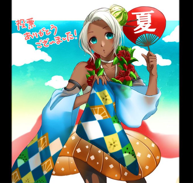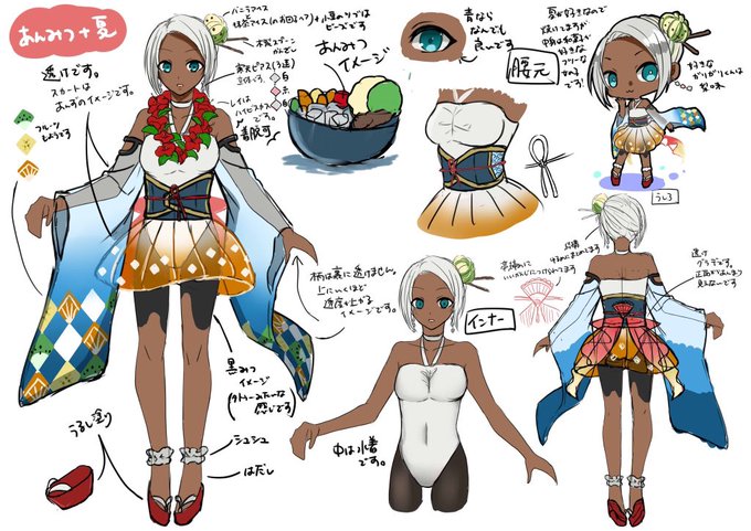 私のキャラデザは③でした🌸😊 あんみつモチーフの褐色っ子でした! 投票してくださった方、参加者さん、ありがとうございましたー!🌺🌴🏖