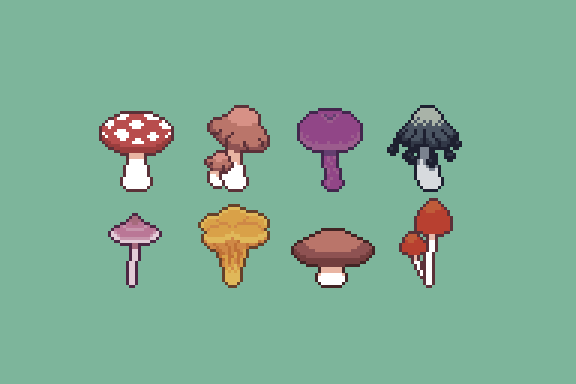 Pixel art practice with mushrooms!